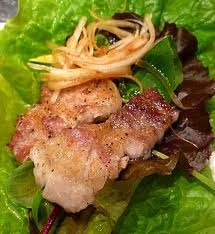 まあ、簡単にいうと豚の三枚肉を焼いてチシャで包んで食べる料理ですね。