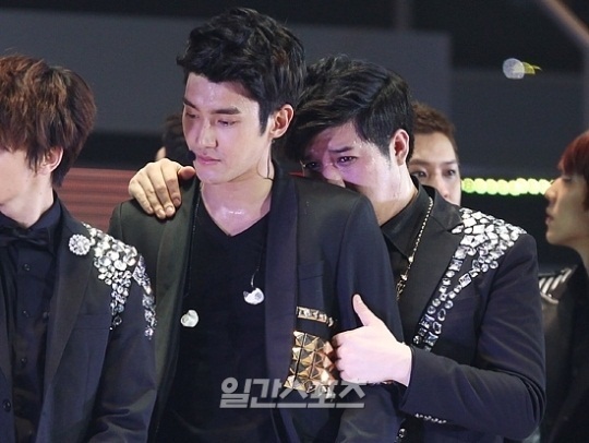 大賞をとってシウォンの後ろで泣くシンドン!